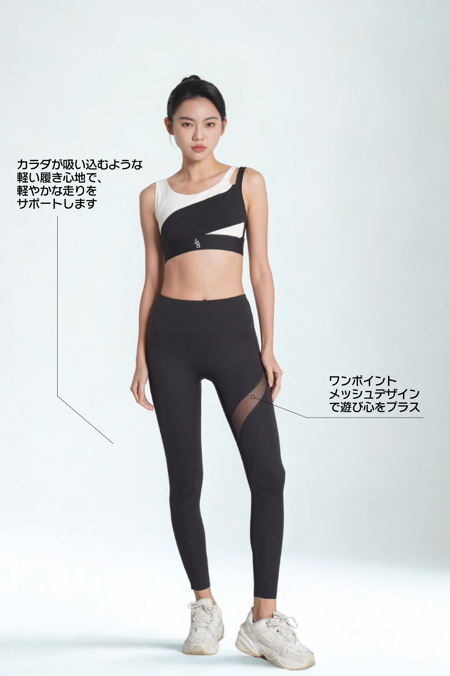軽い着圧感で動きやすさを追求した、ライン入りのデザイナーズレギンス。日常にもトレーニングにもなじむ、快適さと美しさを両立した一枚です。